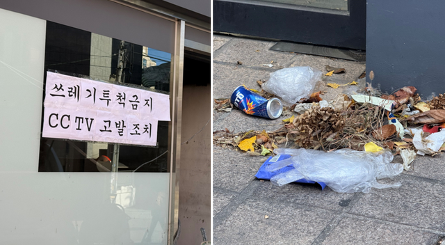 또 다른 문제는 시위 이후 발생하는 쓰레기다. 르데스크가 한남동을 돌아본 결과 도로와 길에 쓰레기 하나 없을 정도로 깨끗했다. 다만 시위가 일어난 장소만은 다른 동네에 온 것처럼 쓰레기가 널브러져 있었다. 담배꽁초는 물론 음료수 캔까지 각종 쓰레가 쌓여 있는 모습을 확인했다. 시위 장소 인근의 한 상가는 쓰레기 투척 시 고발 조치하겠다는 경고성 문구를 큼지막하게 달아 놓기도 했다.