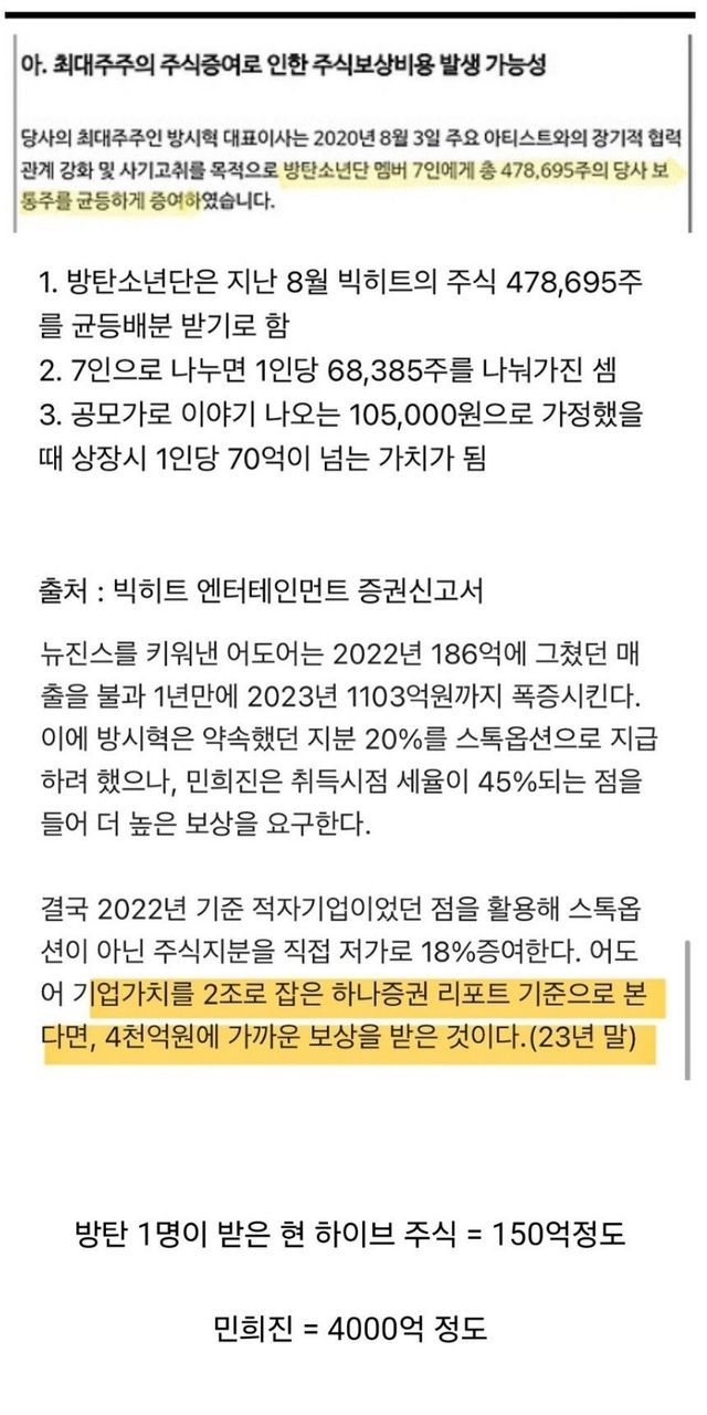 민희진이 하이브에게 받은 대우들.