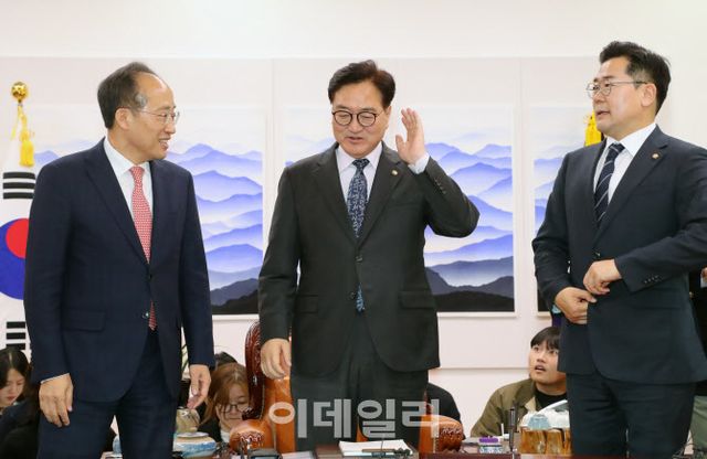 여야는 18일 오후 서울 여의도 국회에서 우원식 국회의장과 양당 원내대표가 회동한 자리에서 이같이 밝혔다. 박찬대 민주당 원내대표는 이날 회동을 마치고 기자들과 만나 “예산안 심의 기한인 12월2일과 정기국회 마지막날인 12월10일 등 두 번의 정기국회 본회의 날짜를 잡았다”며 “그외 필요에 따라 본회의를 잡는 것은 양당 수석 협의를 통해 진행하기로 했다”고 설명했다.