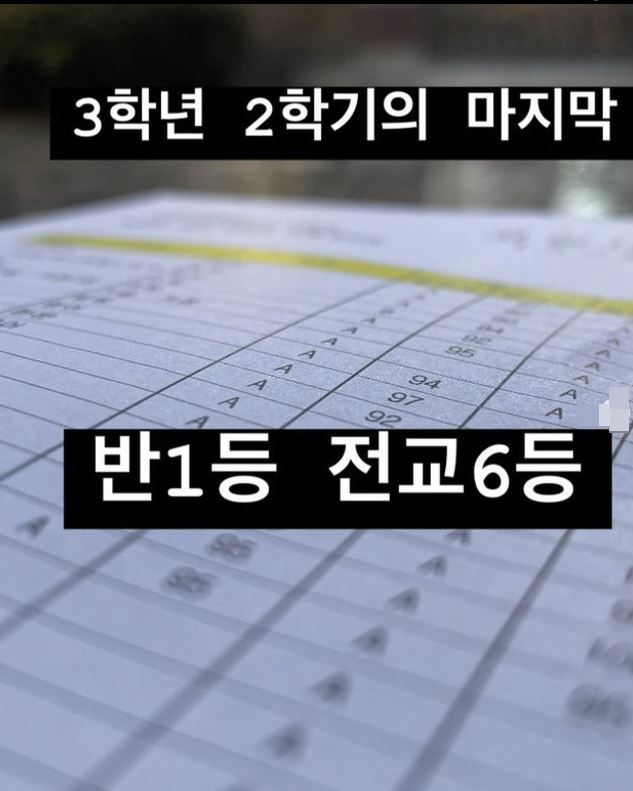 문우진의 어머니는 18일 개인 채널에 "3학년 2학기의 마지막. 반 1등, 전교 6등"이라는 글과 함께 사진을 게재했다. 공개된 사진에서는 95점, 94점, 97점, 92점 등 문우진이 받은 과목 성적을 확인할 수 있다.