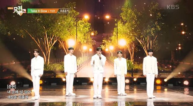 티아이오티(김민성, 금준현, 홍건희, 최우진, 신예찬)는 지난 15일 KBS2 '뮤직뱅크'를 시작으로 ENA 'ENA 케이팝업 차트쇼', 16일 MBC '쇼! 음악중심', 17일 SBS '인기가요'에 출연하며 새 디지털 싱글 '테이크 잇 슬로' 무대를 선보였다.