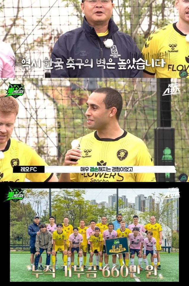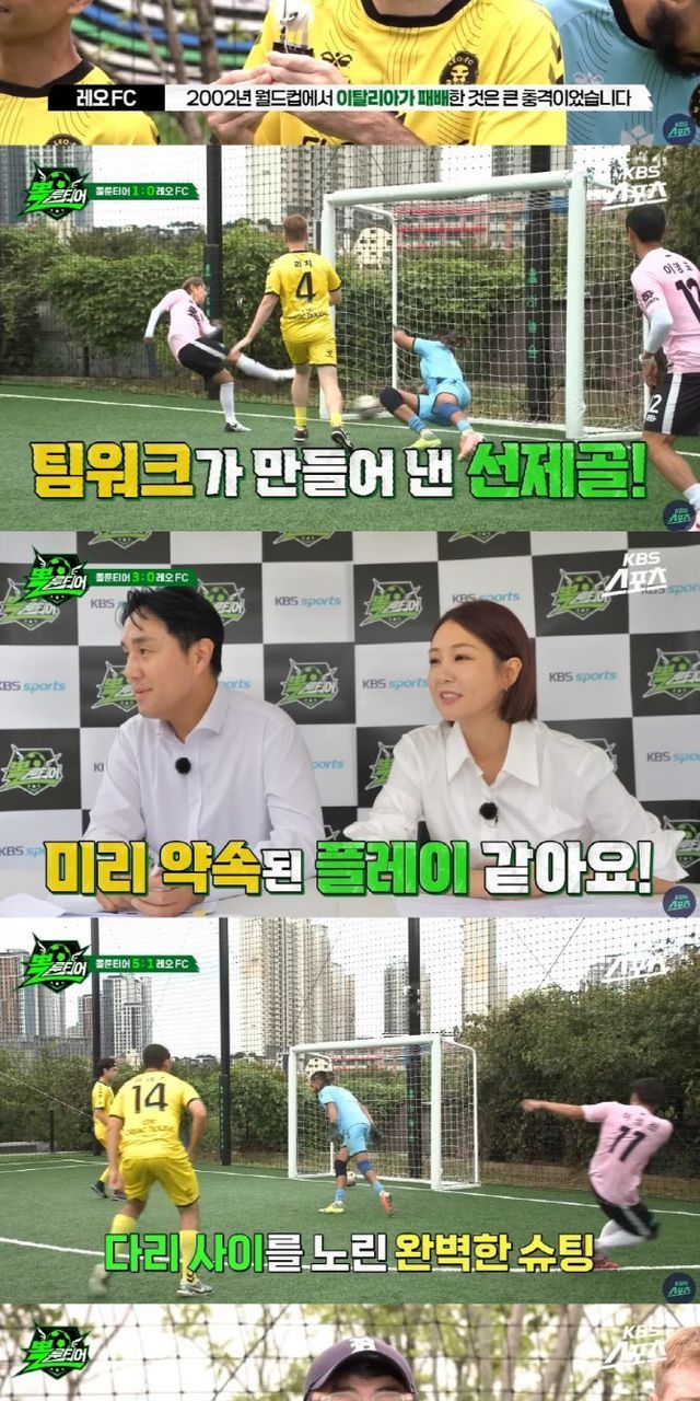 [이데일리 스타in 김가영 기자] KBS 공식 유튜브 ‘KBS 스포츠’의 스포츠 예능 ‘뽈룬티어’에서 남우현X정대세를 대신해 백지훈X김동철을 새롭게 합류시킨 ‘영표팀’이 월드컵 스케일(?) 경기를 펼친 끝에 다국적 팀 레오 FC에 5대1 승리를 거뒀다.