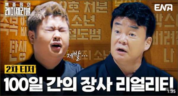 ENA는 지난 7일 공식 유튜브 채널을 통해 백종원이 출연하는 새 예능 프로그램 <백종원의 레미제라블> 의 티저 영상을 공개했다. 백종원의>