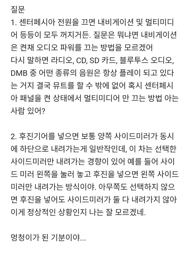 이차는 센터페시아를 켜지않으면 에어컨도 켤수 없다.