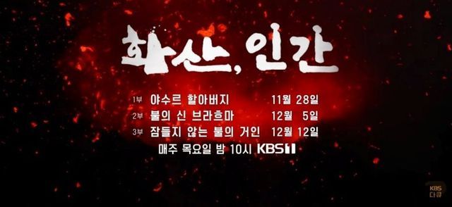 11월 28일(목)부터 3주간 매주 목요일 밤 10시 KBS 1TV에서 방송될 ‘화산, 인간’은 일명 ‘불의 고리(Ring of Fire)’라고 불리는 환태평양 조산대에서 화산을 바로 옆에 두고 살아가는 사람들의 이야기를 담아낼 예정이다.