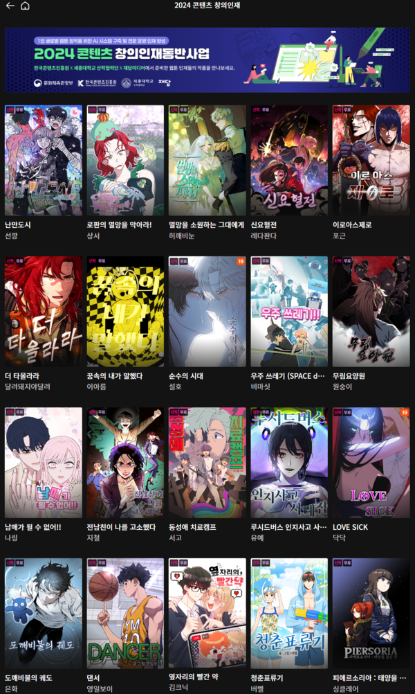 국내 대표적인 웹툰 에이전시 (주)재담미디어는 세종대학교 만화애니메이션텍 대학원과 공동으로 문화체육관광부의 ‘2024콘텐츠창의인재동반사업’의 일환인 콘텐츠 창의인재 웹툰 20편을 재담쇼츠 플랫폼에 공개했다.
