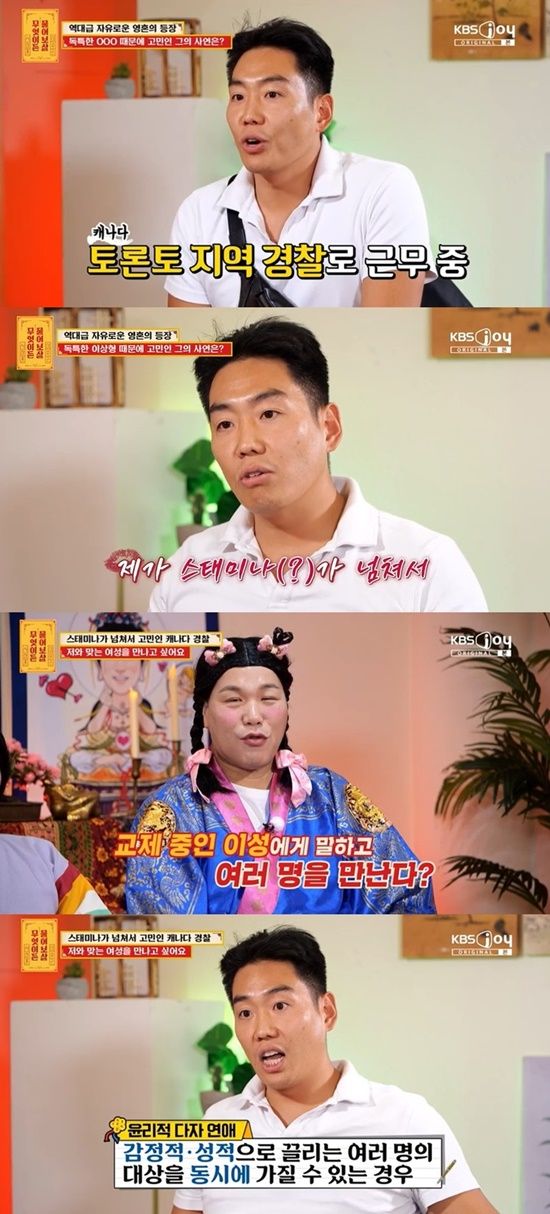 18일 방송된 KBS JOY '무엇이든 물어보살'에서는 캐나다 토론토 지역 경찰로 근무 중인 38살 고민남이 등장했다.