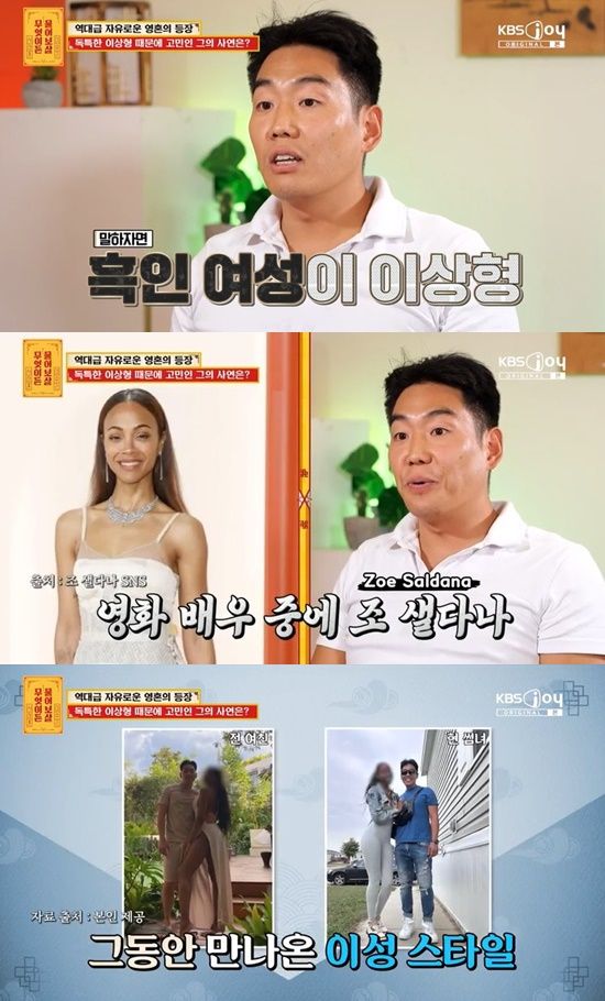 고민 상담을 위해 전날 캐나다에서 한국을 찾았다는 고민남은 "제가 직업도 좋고 가족도 괜찮고, 차도 있고 집도 있고 잘 산다. 그런데 제가 좋아하는 이상형이 독특하다. 피부가 까무잡잡한 여성, 흑인 쪽이다"고 얘기했다.