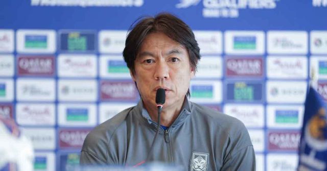 월드컵 축구 국가대표팀 홍명보 감독이 18일(현지시간) 요르단 암만 켐피스키호텔에서 팔레스테인과의 2026 국제축구연맹(FIFA) 북중미 월드컵 아시아지역 3차 예선을 하루 앞두고 기자회견을 하고 있다. 대한민국은 오는 19일 오후 11시(한국시간) 요르단 암만의 암만 국제경기장에서 팔레스타인을 상대로 2026 국제축구연맹(FIFA) 북중미 월드컵 아시아지역 3차 예선 B조 6차전을 펼친다. / 뉴스1=대한축구협회