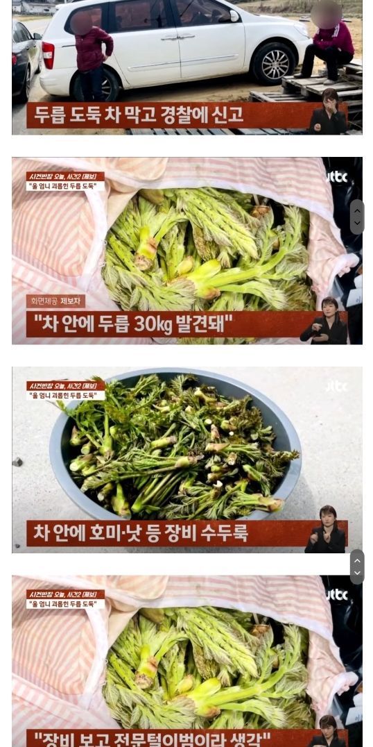 “두릅 훔친 ‘도둑 자매’…양손에 금반지 5개 꼈더라”.