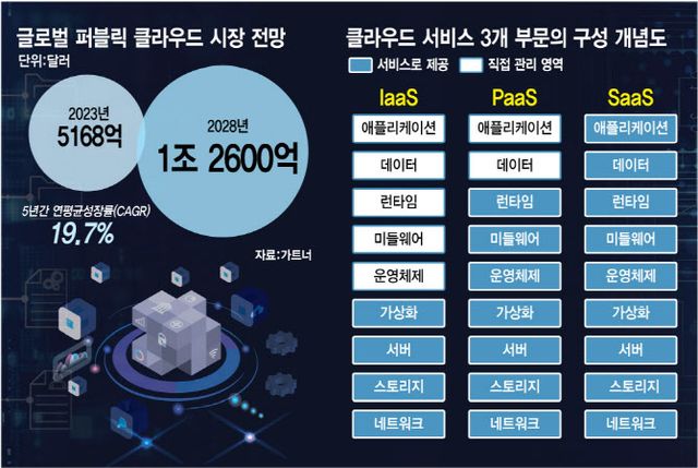 생성형 AI의 부상으로 폭발적인 성장세를 보이고 있는 부문은 바로 PaaS 시장입니다. 시장조사업체 IDC에 따르면 2023년 글로벌 퍼블릭 클라우드 시장 규모는 6692억 달러로, 전년 5593억 달러 대비 19.9% 성장했습니다. 이 기간 PaaS 시장 규모는 29.3% 커져 가장 가파른 성장세를 보였습니다.