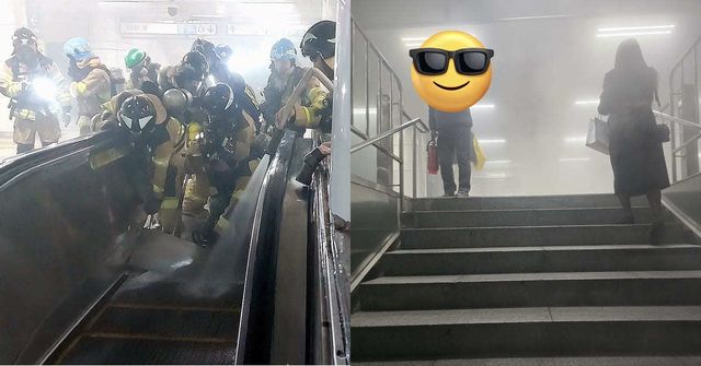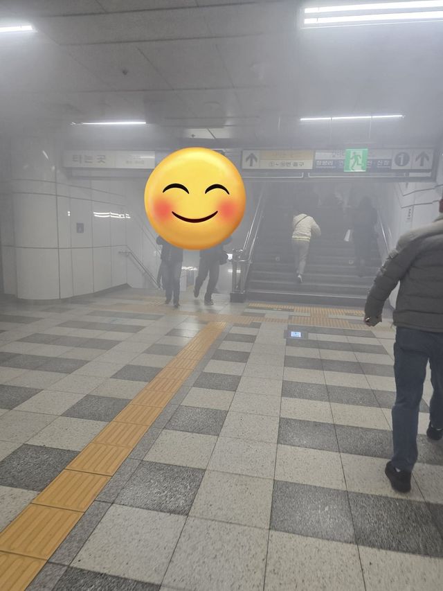 이를 접한 다른 네티즌도 "위쪽은 진짜 하나도 안 보였다. 죽는 줄"이라며 사진을 공개했다. 그가 공개한 사진에는 시야 확보가 어려울 정도로 역사 내에 연기가 심하게 가득 찬 모습이 담겨 있다.