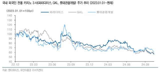 다만, 미국 트럼프 전 대통령 재집권에 따라 앞으로 강도 높아질 중국 규제 정책을 고려하면, 중국 관광객 수 회복률 상승이 국내 외국인 전용 카지노 3사 실적 개선으로 이어지지 않을 가능성이 높다고 이 연구원은 내다봤다.