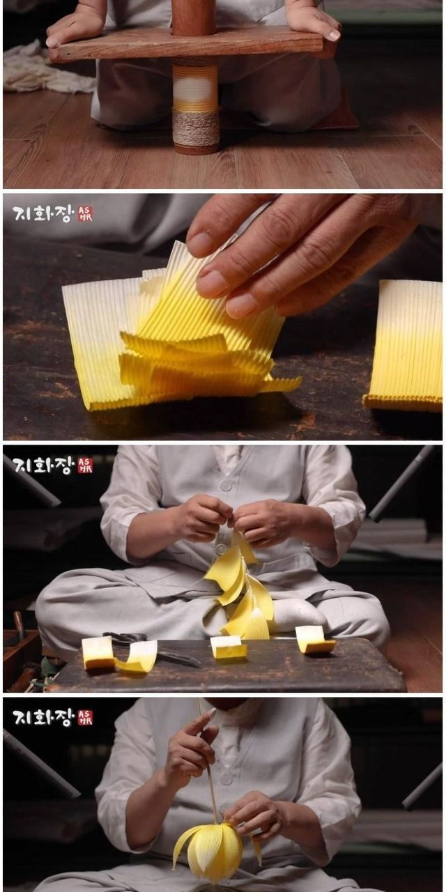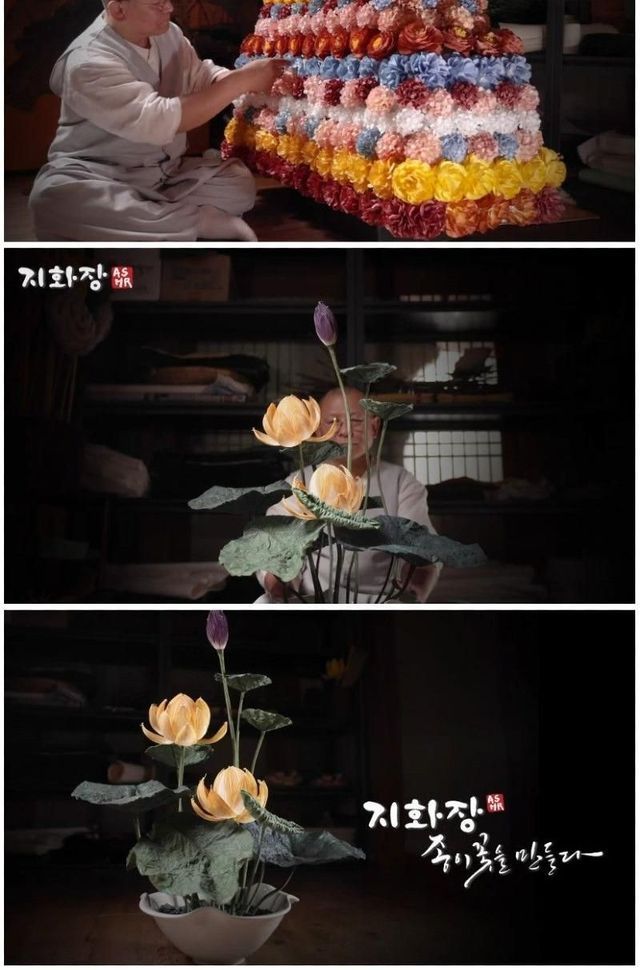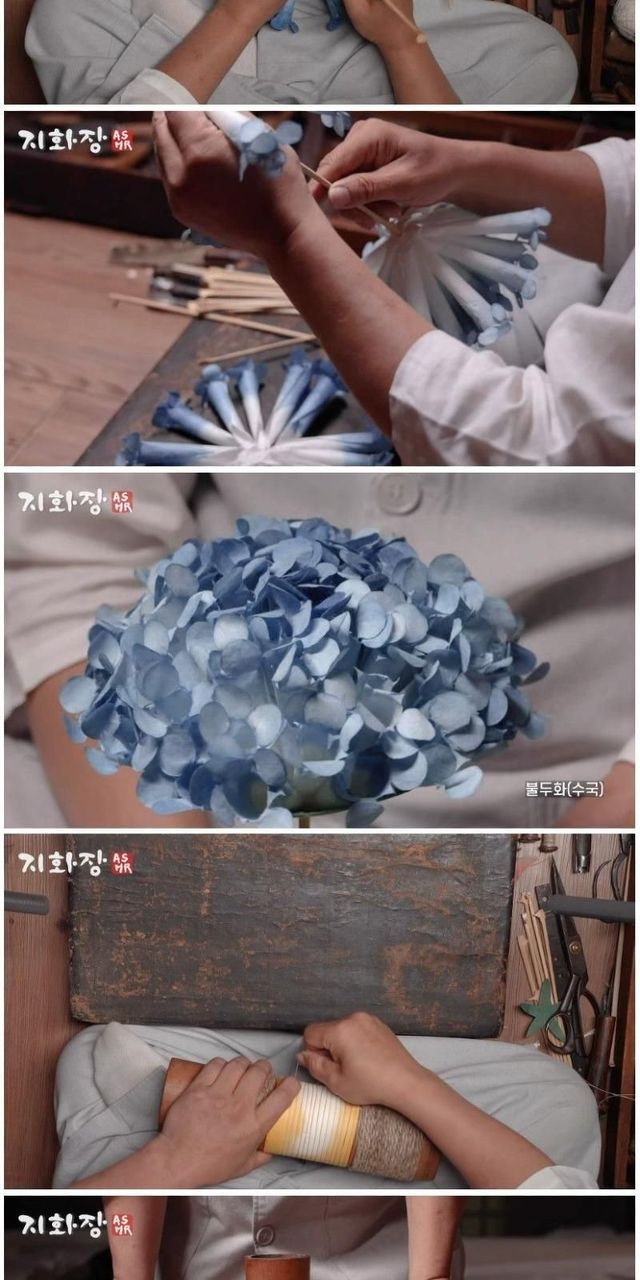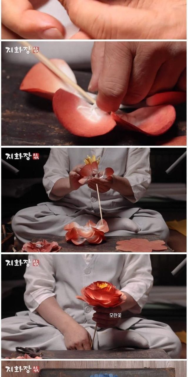 장인이 만드는, 전통 종이꽃.