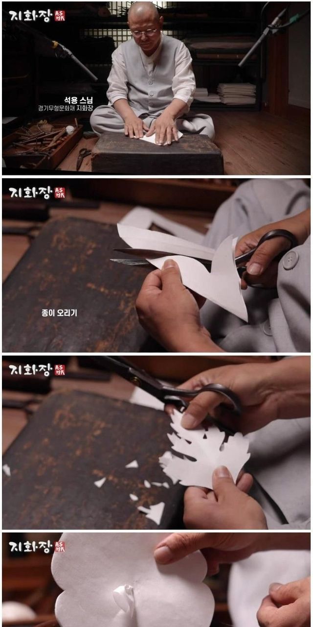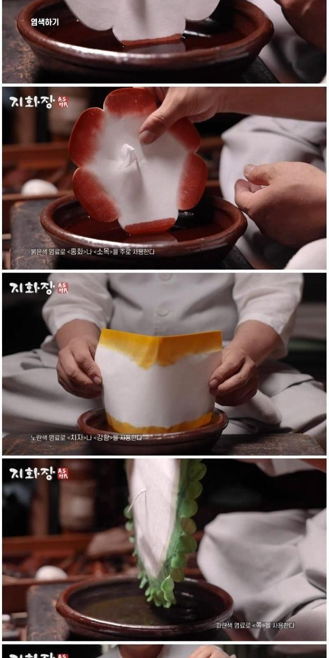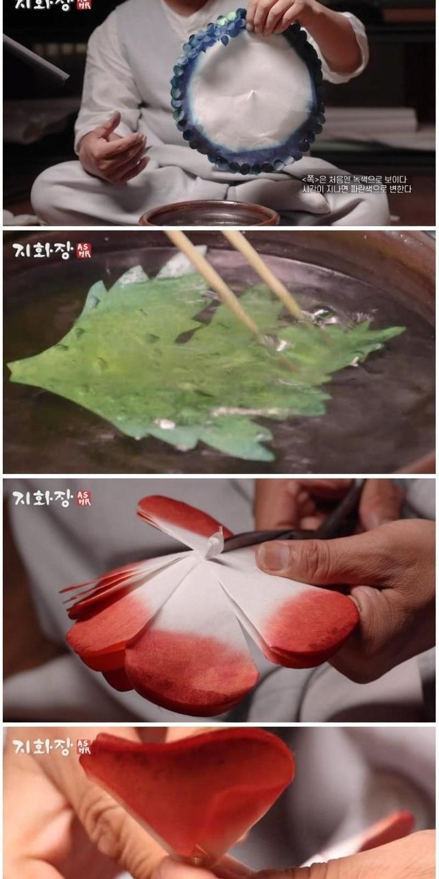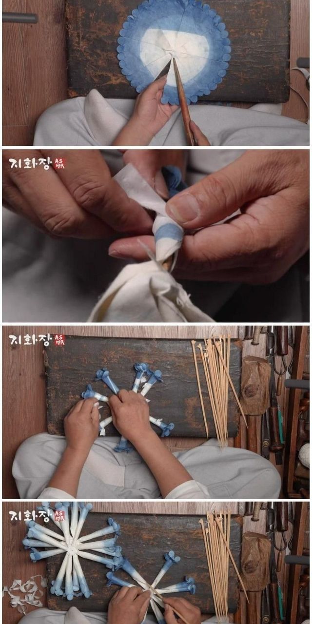 장인이 만드는, 전통 종이꽃.