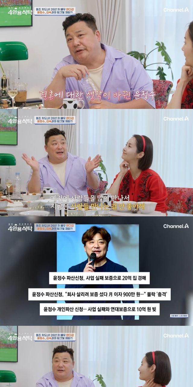 과거 윤정수는 투자 실패와 연대 보증으로 파산을 했으며 그 과정에서 20억짜리 집이 경매로 넘어간 바 있다. 그로부터 2년 후에는 30억 원 빚에 개인 파산 신청을 했다.