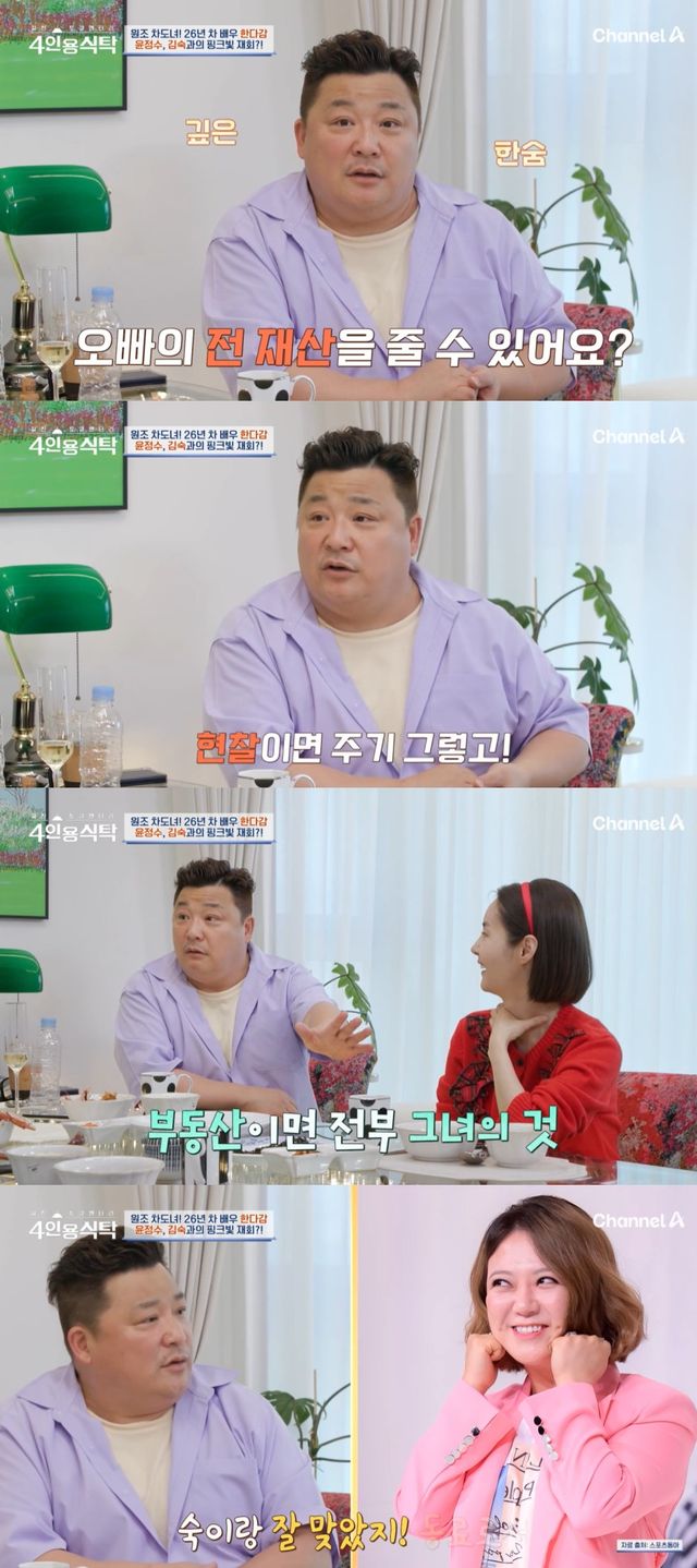 18일 방송한 채널A '절친 토큐멘터리 4인용식탁(이하 '4인용식탁')에는 한다감이 출연해 절친인 배우 윤해영, 김가연, 개그맨 윤정수를 자신의 집에 초대해 이야기를 나눴다.