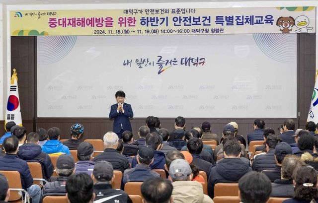 한편, 대덕구는 지난 6월 ‘중대재해 예방 가이드’를 발간하고 관계자들을 대상으로 정기적인 안전교육을 추진하고 있으며, 앞으로도 중대재해 예방을 위하여 관리감독자 및 현장 작업자에 대한 안전교육과 작업장 환경 개선을 적극적으로 추진해 나갈 예정이다.