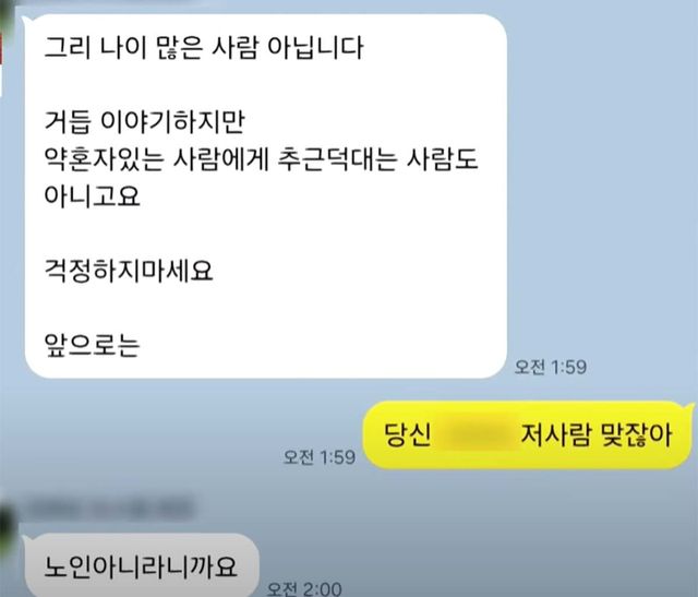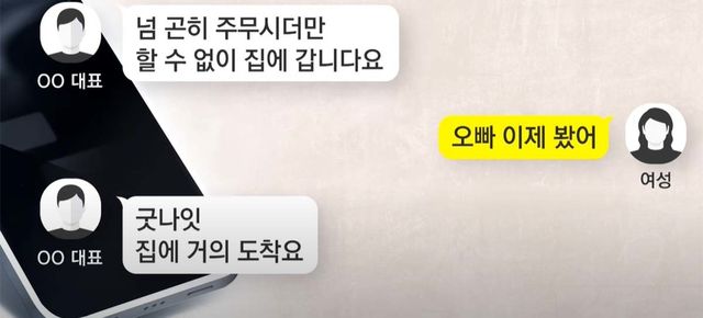 문자 메시지 내용도 이런 추측을 뒷받침했다. 여자친구는 "모텔 4시간 대실을 예약했다"며 남성과 저녁 식사 약속을 잡았다. 그러자 남성은 "4시간? 그날 집에 갈 생각이야?"라고 물으며 함께 더 있길 바라는 뉘앙스를 풍겼다. 여자친구가 부산 여행 계획을 제안하자 남성이 긍정적으로 응답하기도 했다. 이 외에도 여자친구는 남성에게 받은 금품에 대해 "주신 것 잘 쓰겠다"고 감사 인사를 전하기도 했다.