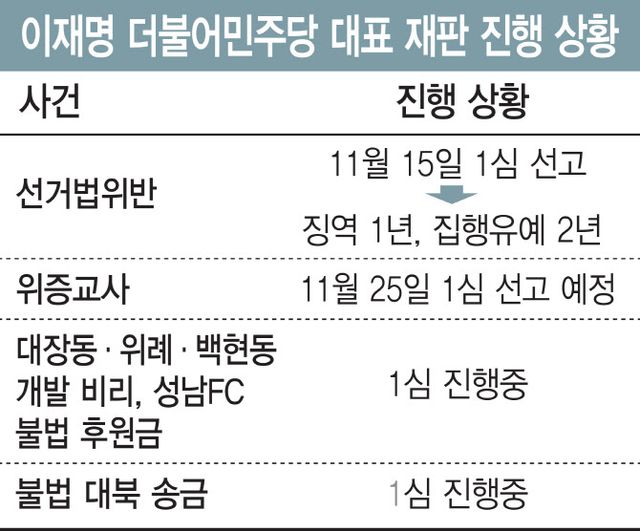 오는 25일에는 이 대표의 위증교사 혐의 재판의 1심 선고가 예정돼 있다.