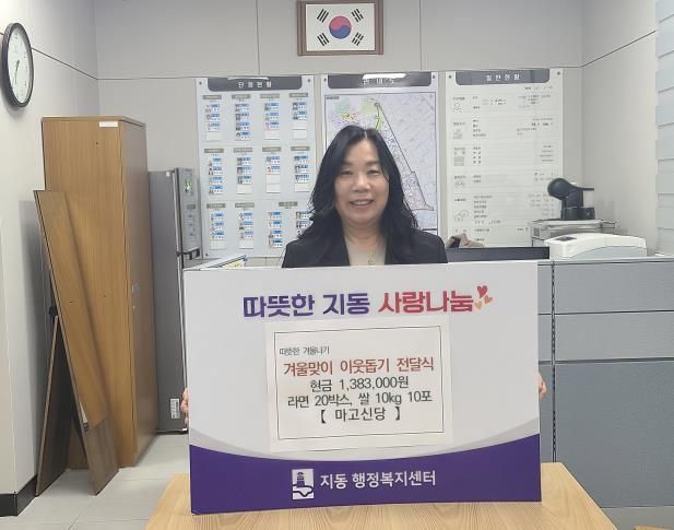 정순화 지동장은 “올해도 잊지 않고 어려운 이웃들을 위해 따뜻한 손길을 보내 주신 마고신당에 진심으로 감사드린다. 이번에 전달받은 후원금과 물품은 관내 도움이 필요한 이웃들에게 잘 전달하여 조금이라도 더 따뜻한 연말을 보낼 수 있도록 하겠다”고 말했다.