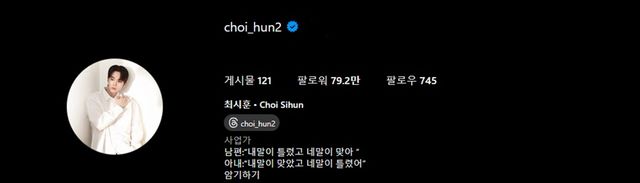 최근 최시훈은 자신의 인스타그램 바이오에 '남편: 내 말이 틀렸고 네 말이 맞아, 아내: 내 말이 맞았고 네 말이 틀렸어 암기하기'라는 글을 남겼다. 에일리와 결혼을 앞두고 무조건 아내의 편을 들어주겠다는 마음을 다진 것.