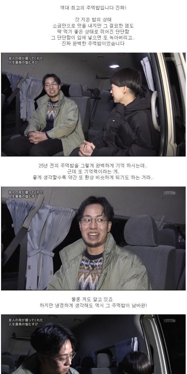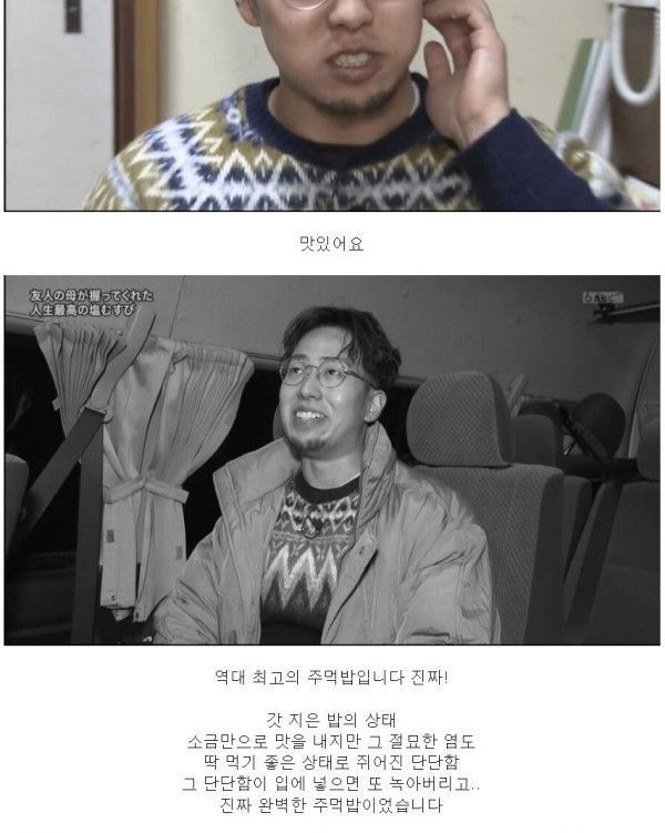 친구 어머니가 만들어준 역대 최고였던 주먹밥을 다시 한 번 먹어보고 싶은 남자.