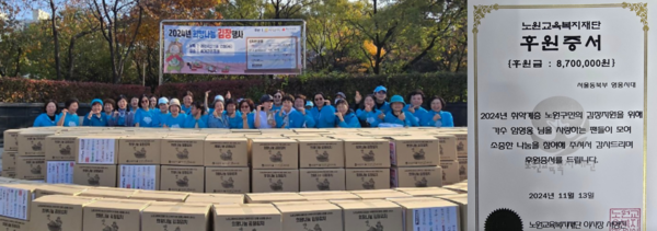 또 다른 곳에서 서울 동북부영웅시대는 21년부터 기부와 봉사활동을 통해 이웃 사랑을 실천하며 꾸준한 선행을 이어왔으며, 이번 2024년 노원교육복지재단 희망나눔 김장행사에 참여해 870만 원을 후원했다.