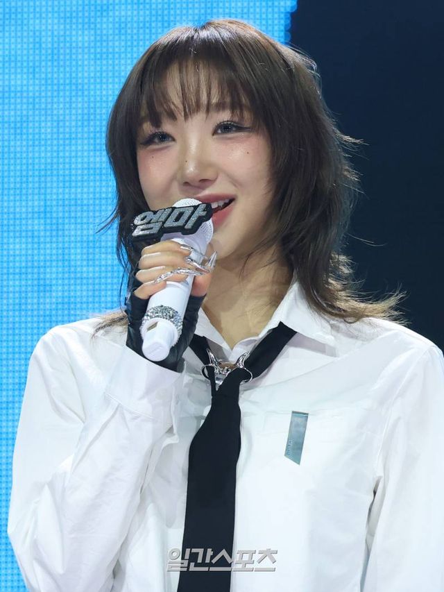 그룹 배드빌런(BADVILLAIN) 엠마가 19일 오후 서울 광진구 예스24라이브홀에서 열린 새 디지털 싱글 '숨(ZOOM)' 발매 기념 미디어 쇼케이스에서 데뷔곡 '배드빌런' 무대를 선보이고 있다.