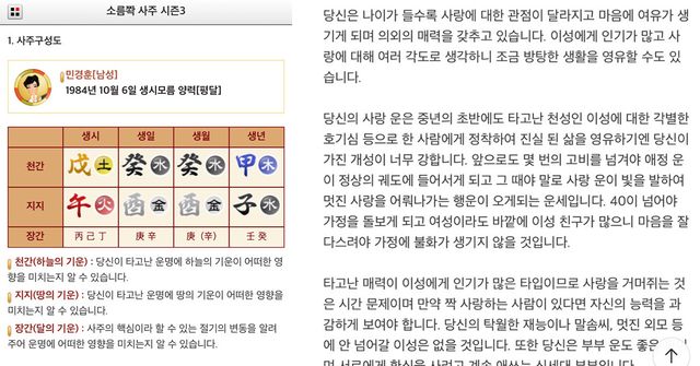 이처럼 그때 그 시절 우리의 마음의 설레게 했던 민경훈이 이제는 유부남이 된 가운데 그의 사주를 통해 앞으로의 결혼생활을 알아보았다.
