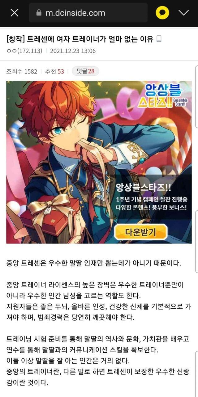트레센에 남자트레이너가 많은이유