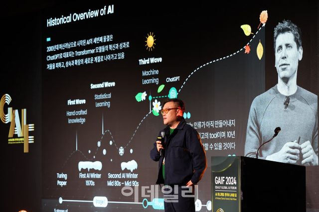 배경훈 LG AI연구원장은 19일 서울 중구 더 플라자 호텔 서울에서 ‘AI 머니게임: 한국이 나아갈 길’을 주제로 열린 ‘제11회 이데일리 글로벌 AI 포럼(GAIF 2024)’에서 “LG 계열사가 필요로 하는 모든 AI를 만들고자 했다”며 ‘엑사원 3.0’을 소개했다.