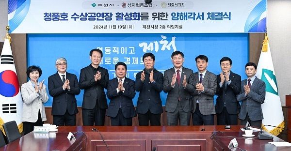 제천시는 제천 청풍호 수상비행장을 복합 문화공간으로 조성하기 위해 성지협동조합과 협약을 체결했다. / 제천시청