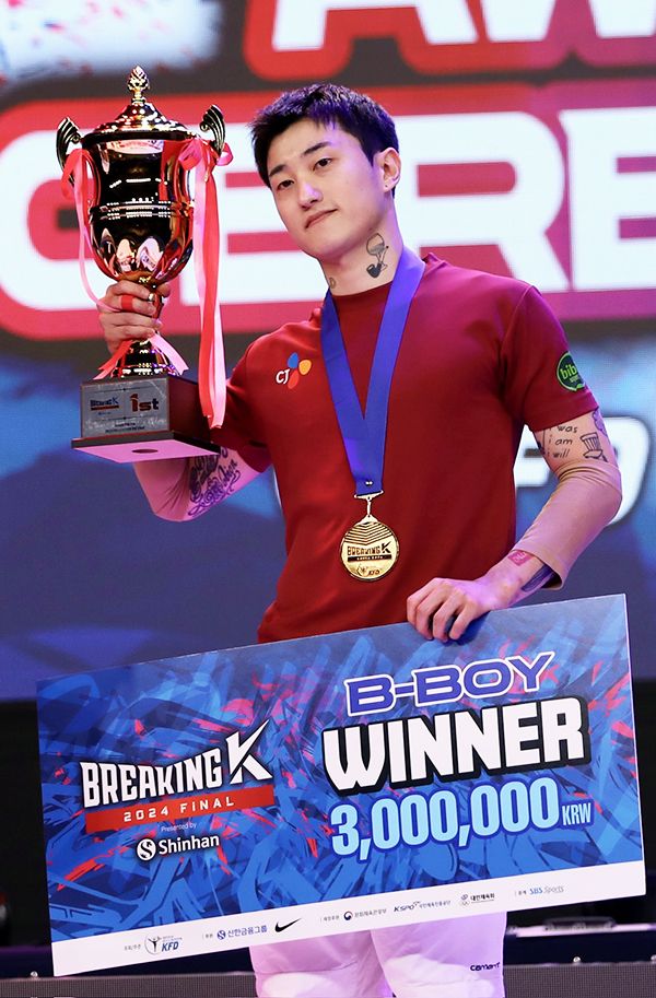 17일 상암 SBS 프리즘 타워에서 진행된 ‘2024 브레이킹 K 파이널’에서 박민혁은 우승 트로피와 금메달을 목에 걸고 세리머니를 펼쳤다.