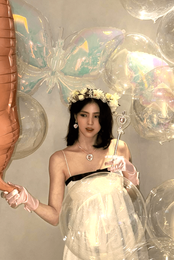 이날 한소희는 자신의 생일을 기념하며 공주 주얼리 세트와 함께 화이트 드레스를 착용했다. 여기에 그녀는 화관까지 더해 러블리한 매력을 자아냈다.