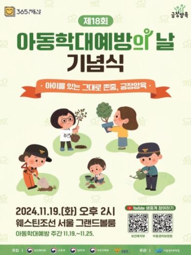 [파이낸셜경제=김영란 기자] 보건복지부와 아동권리보장원은 아동학대예방의 날을 맞아 11월 19일 오후 2시 웨스틴조선 서울 그랜드볼룸(서울시 중구 소재)에서 「제18회 아동학대예방의 날 기념식」을 개최했다.
