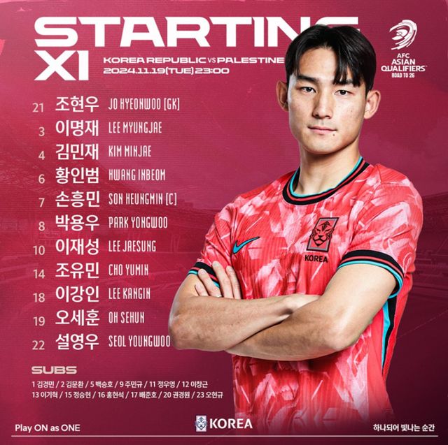 팔레스타인전에 나설 대한민국 축구 국가대표팀의 선발 명단이 공개됐다.
