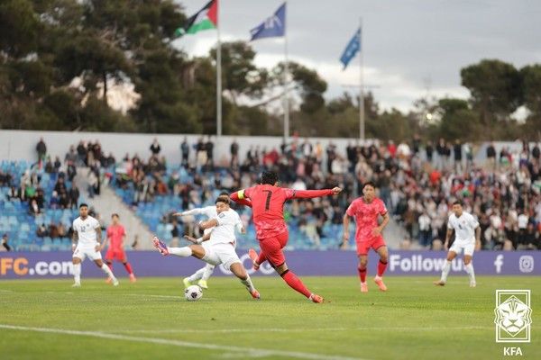홍명보 감독이 이끄는 대한민국 남자 축구대표팀은 19일 오후 11시(한국시간) 요르단 암만의 암만 인터내셔널 스타디움에서 2026 국제축구연맹(FIFA) 북중미 월드컵 아시아 3차 예선 B조 6차전을 치러 팔레스타인과 1-1로 맞선 채 전반을 마쳤다.