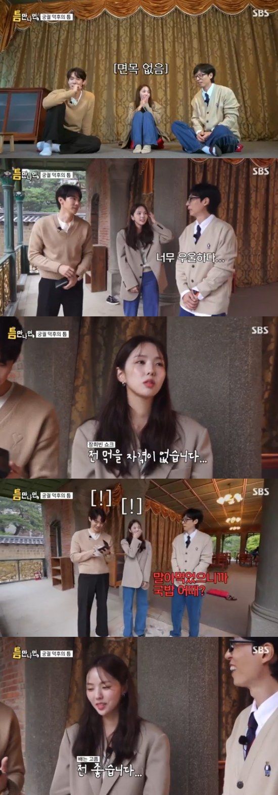 다음 틈 주인을 만나기까지 2시간의 여유가 있던 상황에서 유재석은 점심 메뉴를 물었고, 이에 채수빈은 "저는 먹을 자격이 없다"면서 고개를 숙였다.