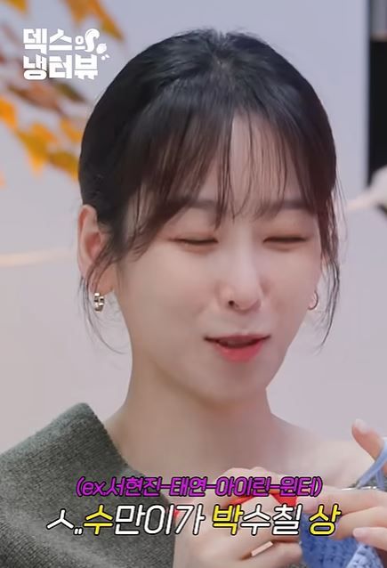 이어 서현진은 "'수박상'이 뭐야?"라는 덱스의 질문에 "수만이가 박수칠 상 아니냐. 난 그렇게 알고 있다"고 답하기도. 그러자 덱스는 "이수만 선생님이 박수칠 상이래"라고 짚었고, 서현진은 "나는 수만이라고 했는데 네가 선생님이라고 하면 뭐가 돼, 내가. 선생님 죄송합니다"라며 '이수만'이 아닌 '이수만 선생님'이라고 말한 덱스를 다그친 뒤 사과해 웃음을 줬다.