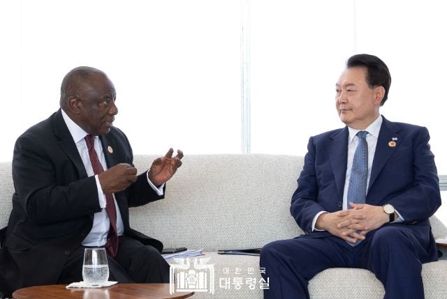 [파이낸셜경제=김예빈 기자] G20 정상회의 참석을 위해 브라질 리우데자네이루를 방문 중인 윤석열 대통령은 11월 19일 '마타멜라 시릴 라마포사(Matamela Cyril Ramaphosa)' 남아프리카공화국 대통령과 정상회담을 갖고, 양국 간 실질 협력 방안과 지역 및 글로벌 현안에 대해 의견을 교환했다.