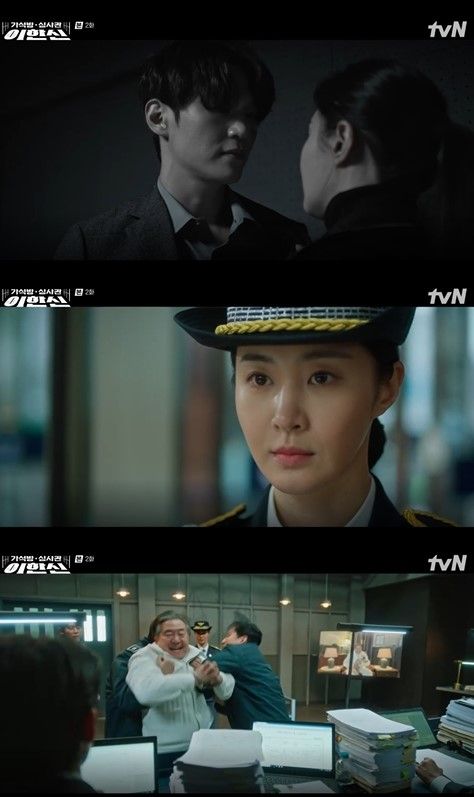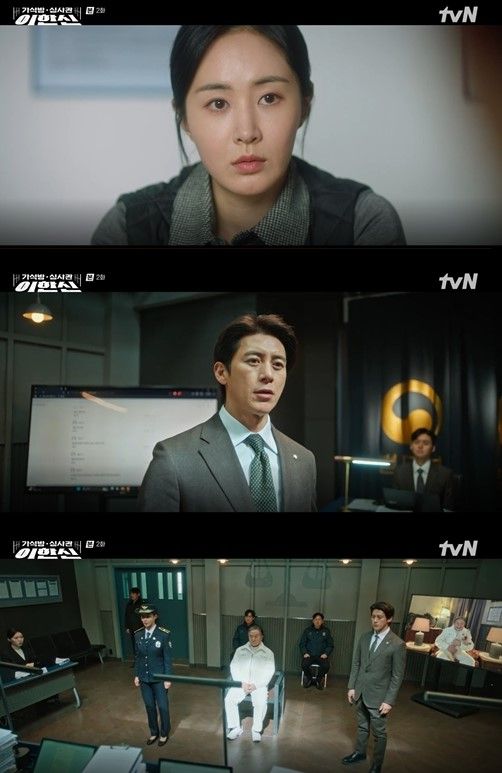 2회에서는 가석방 심사관이 된 이한신은 지동만 회장을 수사했던 담당자 안서윤(권유리)을 찾아갔다. 안서윤은 지난 1회 대로변에서 엎어치기 한판으로 체포한 최정학(남민우)을 조사하는 중이었다.