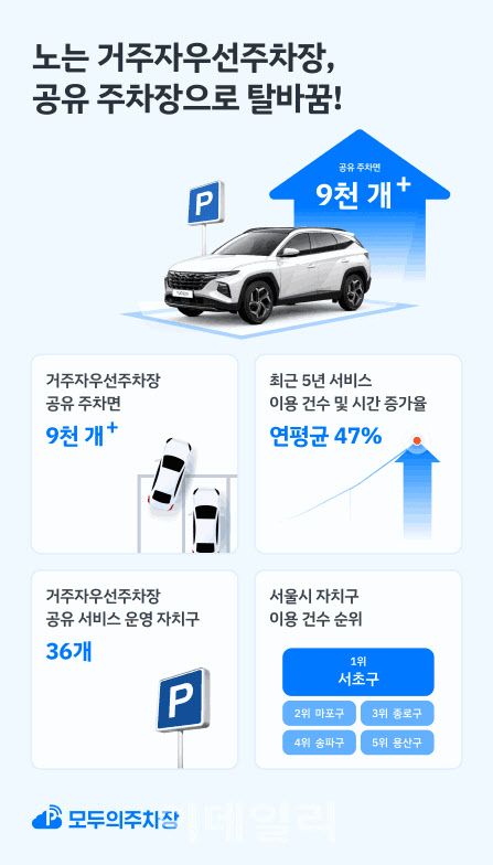 이 밖에도 모두의주차장은 거주자우선주차장을 포함해 1만8000개의 공유 주차장을 운영하고 있다. 지난 9월에는 제주시청과 업무협약을 맺고, 제주시청 인근 민간주차장을 일부 시간대 저렴한 공유주차장으로 활용하는 사업을 추진하는 등 관광지·상가·주택 등 밀집 지역의 주차난 해소를 위해 다각도로 노력하고 있다.