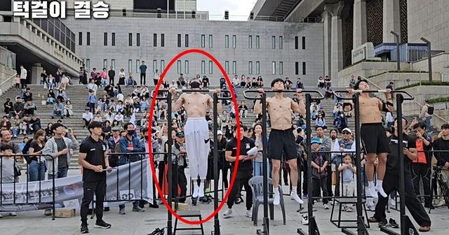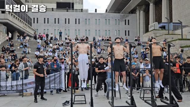 광화문 맨몸운동대회 턱걸이 부문에서 우승한 김도현 씨 / 유튜브 '파워 POWER'