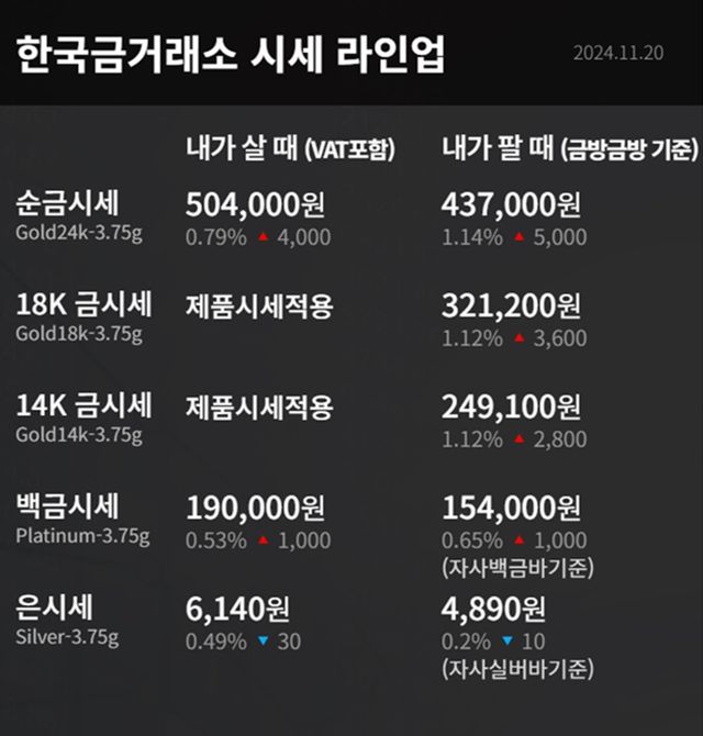 순금(24K) : 매입가 50만 4000원 / 매도가 43만 7000원