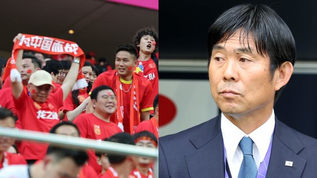 중국을 응원하는 중국 응원단과 일본 축구 대표팀 감독 사진 / 뉴스1
