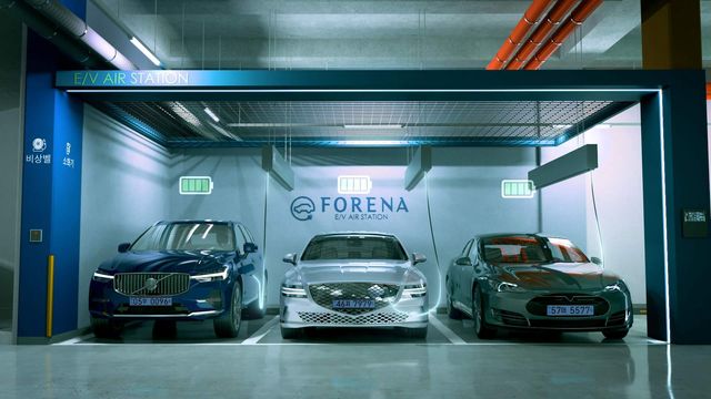 대표적인 예로 국내 최초 천장형 전기차 충전 시스템인 '포레나 EV에어스테이션'이 있다. 이 시스템은 천장에서 충전 커넥터가 내려오는 방식으로, 주차 공간을 효율적으로 활용할 수 있도록 설계됐다.