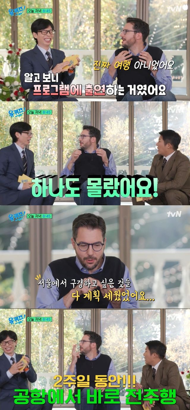 파브리는 "(방송하는 걸) 하나도 몰랐다. 서울에서 구경하고 싶던 거 다 계획했었다. 그런데 갑자기 공항에서 2주일 간 전주에 가게 됐다"고 덧붙였다.