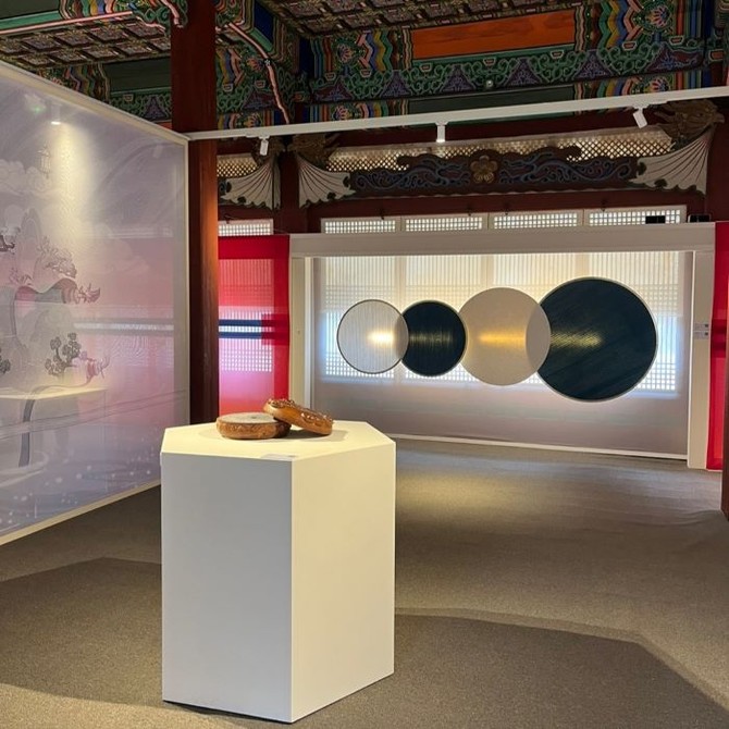 덕홍전 사방에 설치된 전시품들을 하나로 아우르는 건 덕홍전 한 가운데에 있는 '윤도'다. 전시의 기획 의도를 관통하는 윤도는, 시간과 방향, 우주의 이야기를 담은 선조들의 전통 나침반이다.