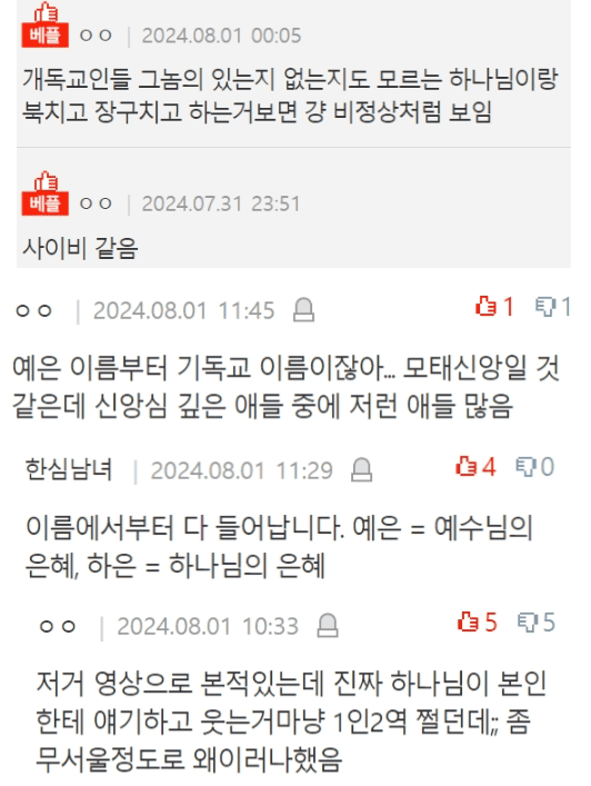 해당 영상을 본 누리꾼들은 "신예은 이름부터가 기독교 이름이네 몰랐네" , "신예은 말하는 거 너무 무서운 거 나뿐인가" , "혼자 1인 2역 하듯이 말하는데 기괴하다" , "신예은 사이비는 아니겠지" 등의 반응을 보였다.